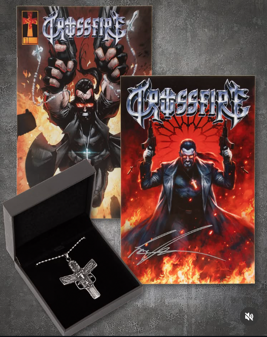 Cette semaine, sort aux Etats Unis le premier opus du comics « Crossfire », dont je fis l’illustration de la couverture alternative, que voici.
