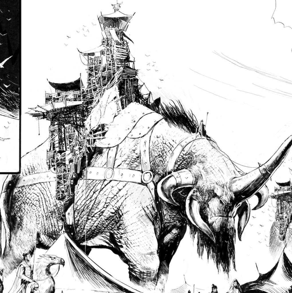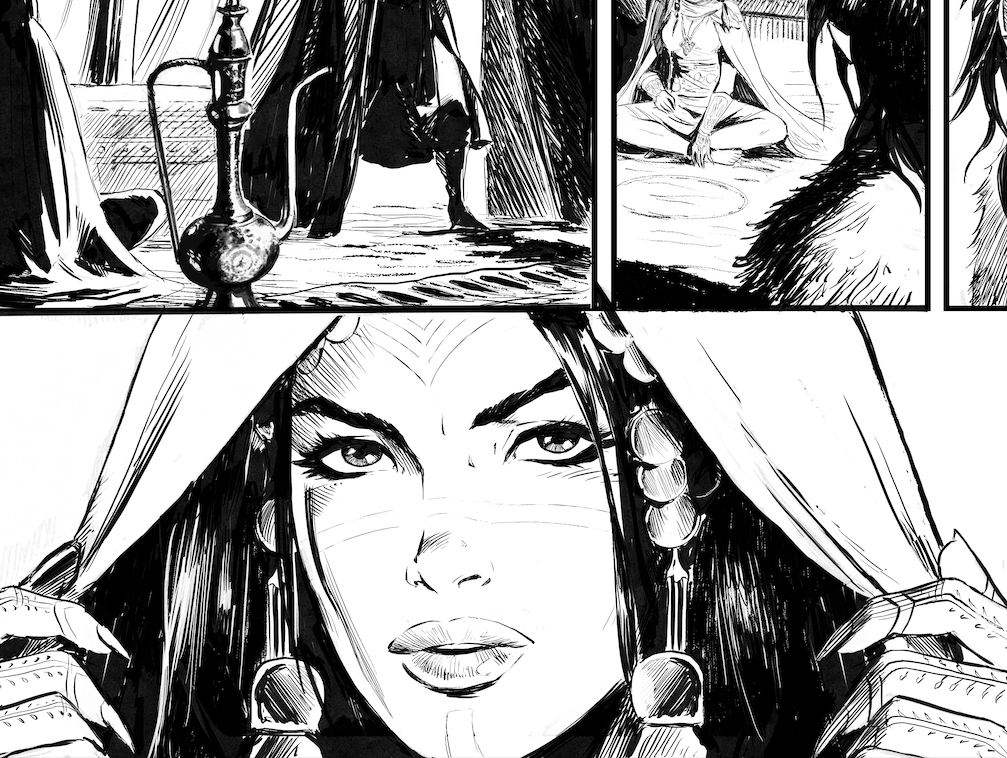 Voici 2 pages déja présentées par Jean Luc Istin (et que je relaie ici) issues du prochain album d’Elfes et qui sortira courant octobre, aux éditions Soleil. L’album présentera une nouvelle race d’Elfes vivant dans le désert, les Elfes des Sables. Je suis actuellment en train de finir de dessiner cet album ô combien exigeant et qui j’espère vous plaira!